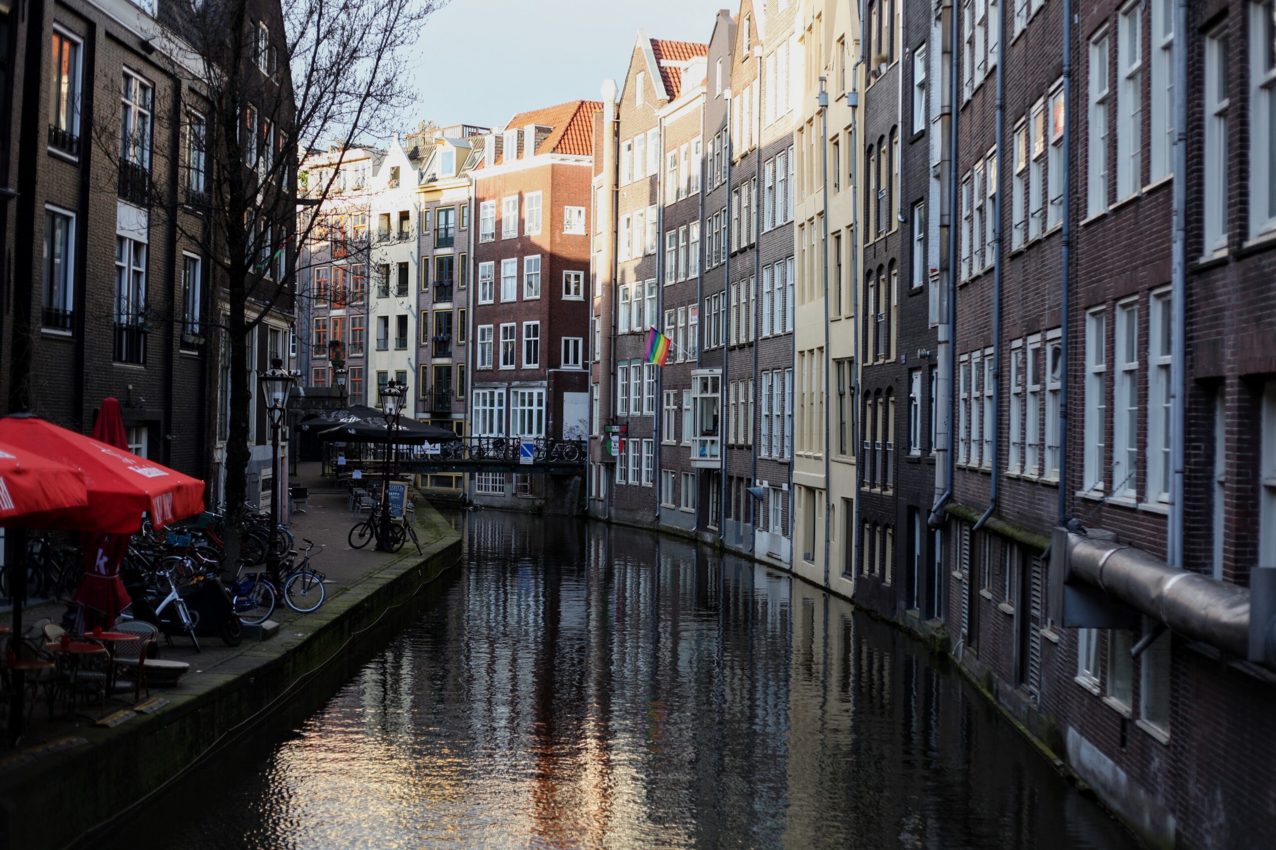 The canals carry reflections of centuries of history, but above them hang symbols of the present rainbow flags, protest stickers, handwritten notes, street art, fragments of voices left behind by people who passed through these streets before you.